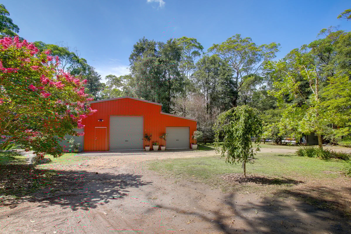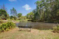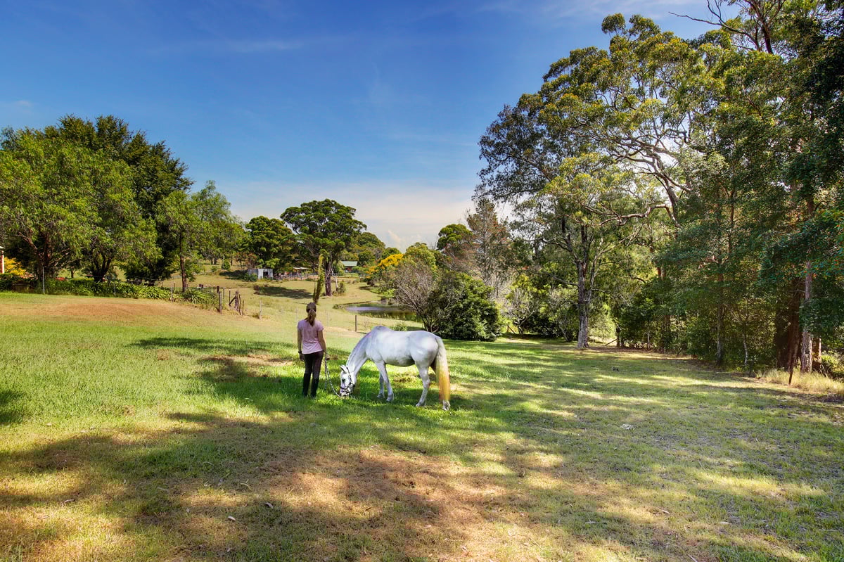 This 5 acre property has 2 dams and a beautiful bushland area with tall trees and a scenic walking track. The paddocks provide plenty of room for a couple of horses.