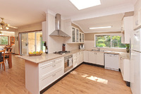 The home has five bedrooms, a study a lovely country kitchen, open plan dining and lounge with a wood combustion fireplace.